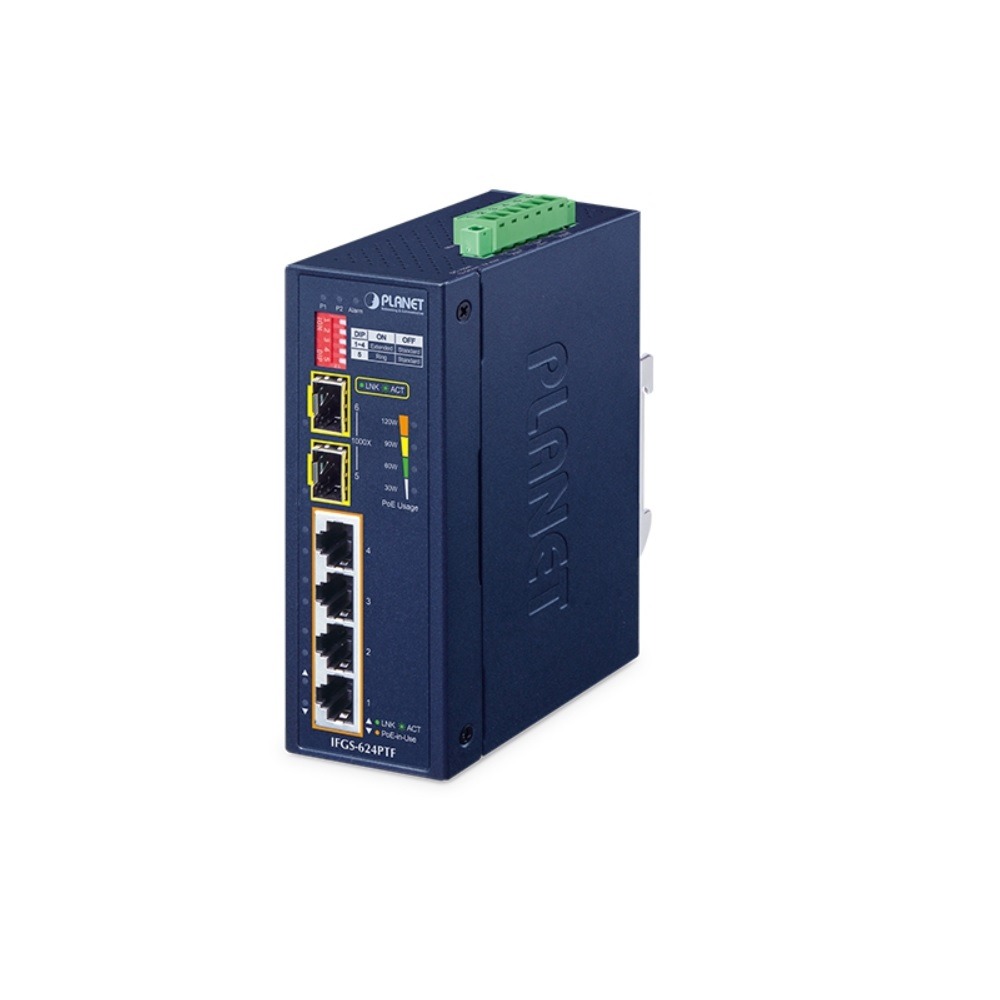 IFGS-624PTF 4-Port 10/100TX 802.3at PoE + 2-Port 1000X SFP industrijski neupravljivi Ring Ethernet PoE switch, Planet