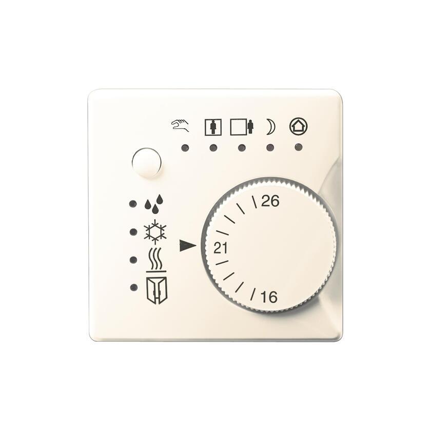 UP 237K11 KNX sobni termostat za grejanje i hladjenje titanium bele boje, zadavanje kruznim potenciometrom, povezivanje pomocu UP 117