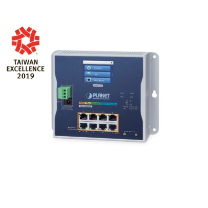 WGS-5225-8P2SV 8-port 10/100/1000T 802.3at PoE + 2-port 1G/2.5G SFP industrijski L2+/L4 Ring upravljivi Gigabit Ethernet PoE switch sa LCD Touch ekranom, zidna montaza, Planet